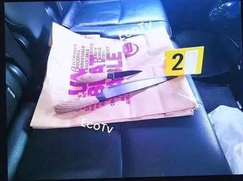 然而,在那张血迹斑斑的图片中,同样的刀却奇迹般地变成了黑色塑料刀柄。