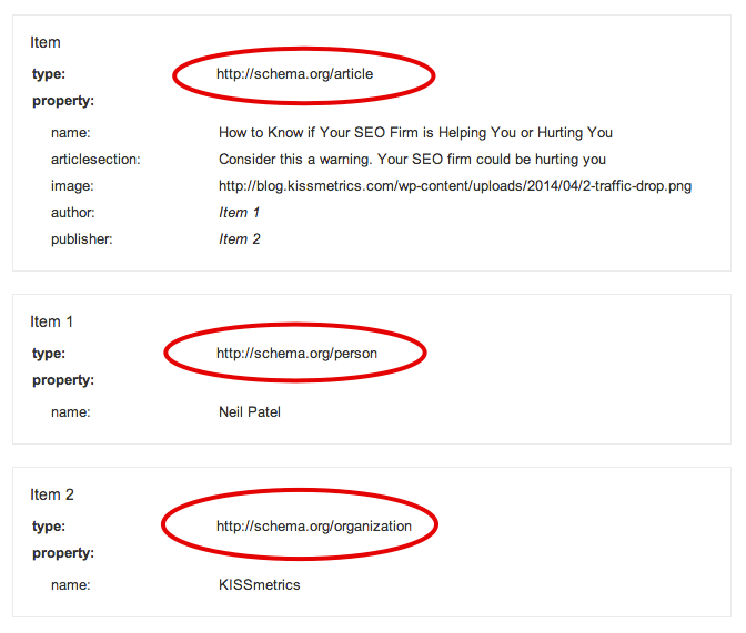 How? Because the markup tells the search engine what that content means. For example, let’s say the word “Neil Patel” appears in an article. The search engine sees this, and produces a SERP entry with “Neil Patel.”